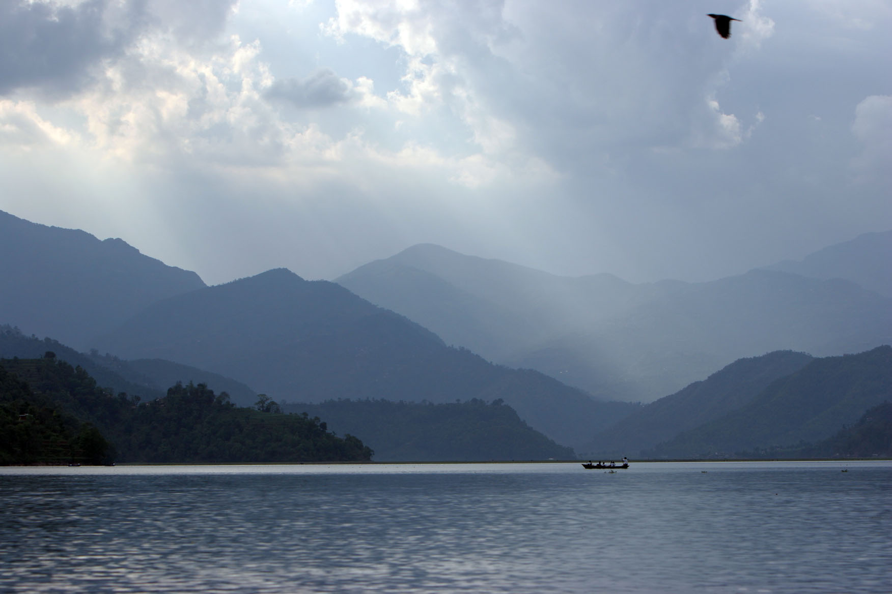 Cloudy dusk at Fewa Lake in Pokhara.