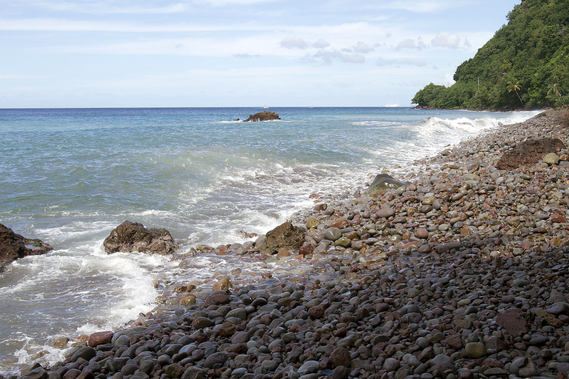 The sharp, rocky beach at Champagne Reef, Dominica