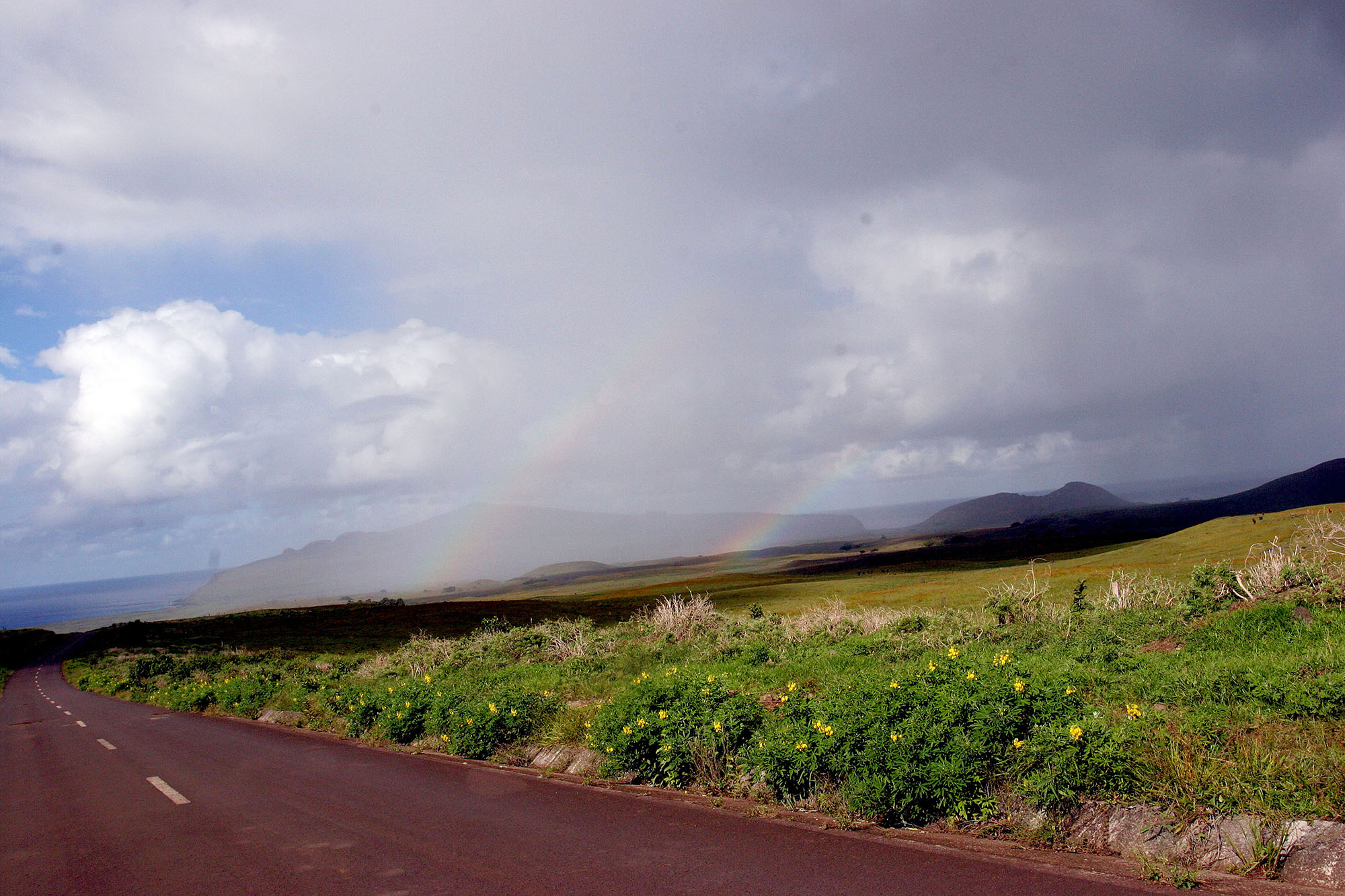 Double rainbow on the road from the north coast through Vinapu