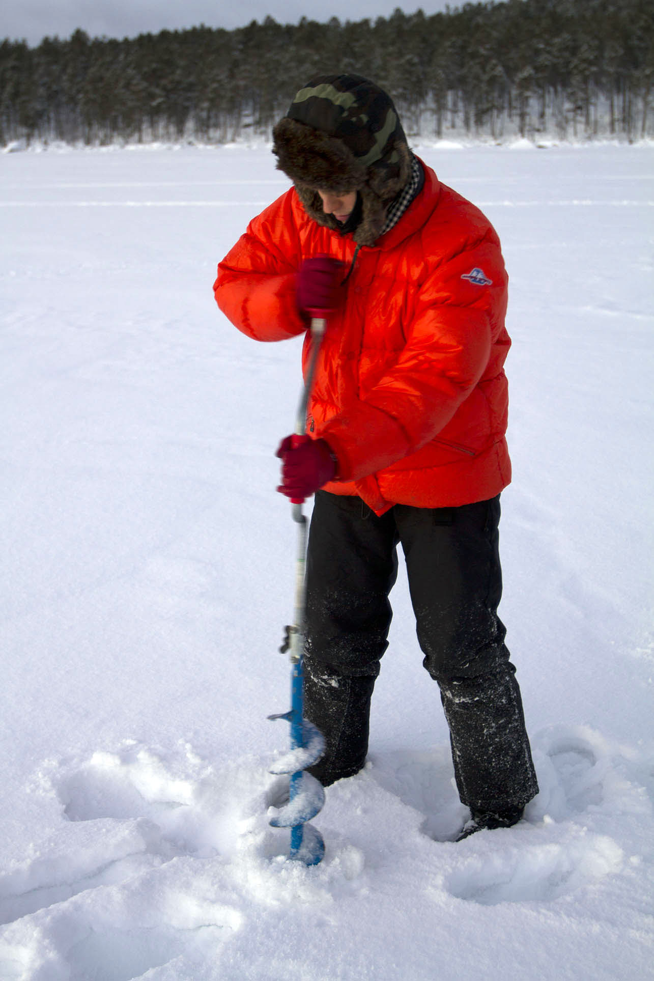 Drilling a hole in the 30cm thick ice
