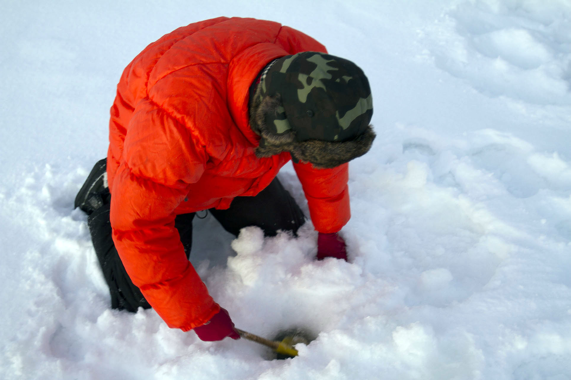 Removing ice and snow obstructing the hole