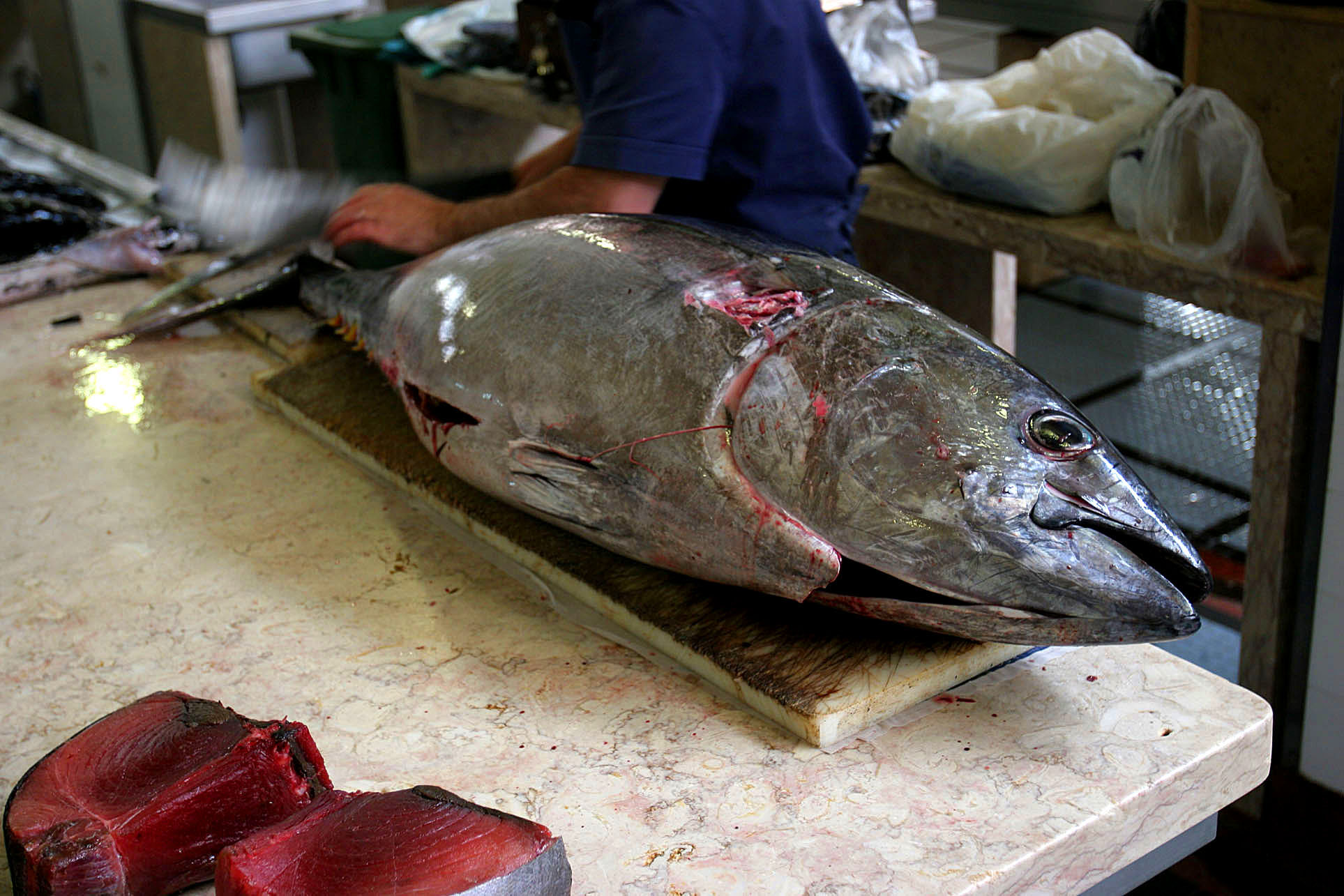 Bigeye Tuna being steaked