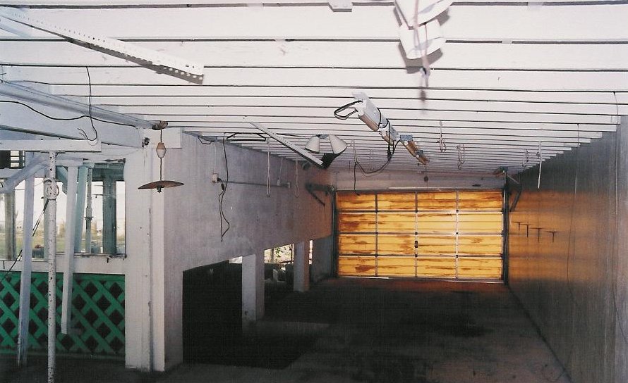 You can see, Ray nailed up some boards and couldn't be bothered for "structural integrity," opting instead to support the roof with loose planks, pipes, and jacks. This was one of the first things to come down.